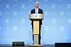 Finansminister Jan Tore Sanner legger frem regjeringens forslag til ny lønnsstøtteordning under en pressekonferanse.