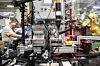 Ved Stihl Inc. produksjonsanlegg i Virginia Beach jobber arbeidere og roboter side om side.