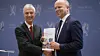 Leder i Frontfagsmodellutvalget, professor Steinar Holden, overleverer utvalgets rapport til finansminister Trygve Slagsvold Vedum.
