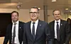 Hydro kjøper Sapa. Dette ble offentliggjort mandag. Konsernsjef Svein Richard Brandtzæg (foran) i Hydro, konsernsjef i Sapa Group, Eivind Kallevik (tv) og Egil Olav Hogna.