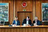 LO-leder Hans-Christian Gabrielsen signerer avtalen om nye og bedre betingelse for boliglån. Fra venstre konsernsjef Jan-Frode Janson i SpareBank1 SMN, LO-leder Hans-Christian Gabrielsen og konsernsjef Richard Heiberg i SpareBank 1 Østlandet.