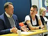 Stami-direktør Pål Molander diskuterer fremtidens arbeidsliv sammen med gründer Anita Schjøll Brede og Malin Frantzen Øiseth, trainee, Ungt Entreprenørskap.