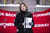 Likestillingsombud Hanne Bjurstrøm slår fast at vernet mot seksuell trakassering i praksis ikke er godt nok og støtter forslaget om et lavterskeltilbud. Her fotografert da hun forrige helg holdt appell foran Stortinget under en marsj mot seksuell trakassering.