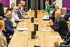 Pressekonferanse med Stein Lier Hansen (t.h.) og Jørn Eggum i forbindelse med lønnsoppgjøret Årets lønnsoppgjør som ble utsatt på grunn av koronakrisen, gjenopptas.