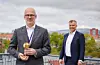 Kringkastingssjef Thor Gjermund Eriksen fikk overlevert det håndfaste symbolet på at NRK er landets mest populære bedrift av Randstad-sjef Eivind Bøe.