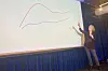 Grafen Inger Haukenes peker på, viser forskjellen i sykefravær mellom kvinner (rød) og menn gjennom livet. Den første 'hevelsen' er i alder for svangerskap, den andre, mindre, er overgangsalderen.