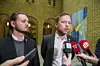SVs Freddy André Øvstegård (t.v.) og partileder Audun Lysbakken fremmer fredag et grunnlovsforslag om kortere møtefri på Stortinget.