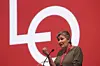 LO-leder Gerd Kristiansen på talerstolen under hovedorganisasjonens representantskapsmøte 21. februar 2017.