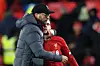 Liverpool-trener Jürgen Klopp holder rundt Andrew Robertson.