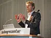 Atle Riksfjord i Eika Gruppen og Christoffer O. Hernæs i Sparebank1 krysser fingrene for økt innovasjonstakt i bransjen.