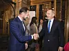 Amund Djuve (t.h.) slutter som redaktør i Dagens Næringsliv 1. september. Her hilser han på kronprins Haakon i forbindelse med Årets Gasellepris på Christiania teater i Oslo i 2017.