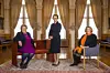 F.v.: statsminister Erna Solberg, stortingspresident Tone W. Trøen og høyesterettsjustitiarius Toril Marie Øie samlet i Eidsvollsgalleriet på Stortinget i Oslo onsdag.