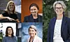 De fem kvinnene som er konsernsjefer i store børsnoterte selskaper. Oppe f.v: Tove Andersen (Tomra), Klara Lise Aasen (Sparebank 1 Østlandet), Benedicte Schilbred Fasmer (Telenor). Nede f.v: Sonja Horn (Entra), Kjerstin Braathen (DnB).