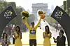 Chris Froome fra Team Sky feirer på toppen av pallen, Tour de France 2016.