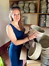 Anne Louise Hübert tilbringer hver sommer i Kenya. Her er hun med brødkurver som er flettet av damer i håndverksbedriften Morembo. Kurvene skal selges av Tilbords-kjeden i Norge.