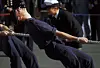 Kronprins Haakon deltok i tautrekking under «familiedagen» i Horten i 1992. Øyensynlig drar han av alle krefter, men den sosiale «loffing»-effekten tilsier at han ikke drar like hardt når andre også drar.