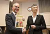 Professor Signy Irene Vabo skal forske på lederskap i kommunene. Her overrekker hun en av delrapportene til kommunerform-utvalget til Kommunal- og moderniseringsminister Jan Tore Sanner.