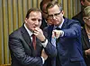 Den svenske næringsministeren Mikael Damberg (til høyre), måtte stoppe forslaget om kvinnekvotering til selskapsstyrene. Her sammen med statsminister Stefan Löfven.