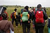 En gruppe flyktninger er her fotografert da de prøvde å krysse grensen mellom Hellas og Makedonia tidligere i måneden.