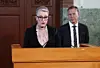 Berit Reiss-Andersen, leder av Nobelkomiteen, offentliggjør at Denis Mukwege og Nadia Murad er vinnerne av årets fredspris på Nobelinstituttet i Oslo fredag. Hun er flankert av direktør ved Nobelinstituttet, Olav Njølstad.Terje Pedersen / NTB scanpix