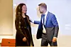 Helseminister Bent Høie hilser på direktør ved Folkehelseinstituttet Camilla Stoltenberg.