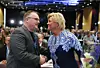 Fremskrittspartiets nestleder Per Sandberg og leder Siv Jensen fotografert under landsmøtet i april.