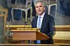 Finansminister Jan Tore Sanner holder finanstalen under fremleggelsen av regjeringen Solberg sitt forslag til statsbudsjett for 2021.