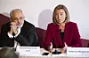 Irans utenriksminister Mohammad Javad Zarif og EUs utenrikssjef Federica Mogherini holder pressekonferanse før åpningen av Oslo Forum på Losby Gods tirsdag.