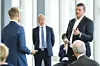 LO-leder Hans-Christian Gabrielsen (til høyre) og NHO-sjef Ole Erik Almlid diskuterer jobbskaping og bærekraft når NHO lanserer «Neste Trekk – veikart for fremtidens næringsliv». Debattleder er Svein Tore Bergestuen.