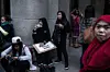 Kvinnelige demonstranter deltar i en årlig protest i Hong Kong for å informere om farene for menneskehandel tilknyttet asylsøkere.
