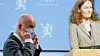 Uenigheter om pandemihåndtering og -råd er noe av stridens kjerne og årsak til at departementet vil omorganisere den statlige helseforvaltningen. Her er helsedirektør Bjørn Guldvog og daværende direktør i FHI, Camilla Stoltenberg, under en av de mange pressekonferanse om koronasituasjonen.
