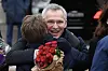 Den nye finansministeren Jens Stoltenberg får klem og blomster når den nye regjeringen presenteres på slottsplassen tirsdag.