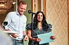 Kultur- og likestillingsminister Lubna Jaffery (Ap, t.h.) med prosjektleder Simen Bakke ved Statsbygg.
